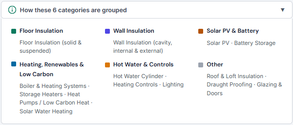 London stands apart. Its profile is driven by wall insulation at a significantly higher rate than any other region, reflecting the capital’s concentration of older, solid-wall housing stock and the constraints of dense, urban environments.