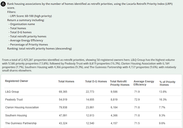 We’ve introduced the new Daily Bulletin format, designed to surface more relevant opportunities with clearer structure and faster scanning. Alongside this, our RAG capability now includes the Locarla Retrofit Priority Index (LRPI) ‐ a major enhancement that moves analysis beyond raw EPC data into prioritised, decision-ready insight. This is supported by the latest Retrofit Report, giving a deeper, more structured view of retrofit demand across the sector.