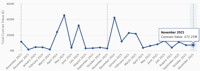 Leading this month’s pipeline, CHIC Limited has launched its Merchants Framework 2026–2034, valued at £1.62bn over 96 months. The UK‐wide framework covers the supply and distribution of building materials for repairs, maintenance, retrofit and new build, including plumbing, heating, electrical, timber, roofing, glazing, managed stores, van stock and plant hire.