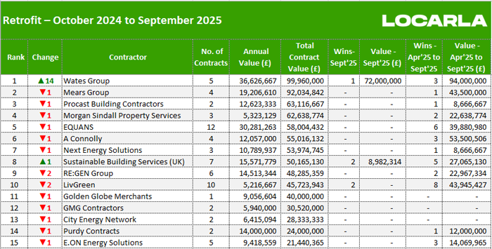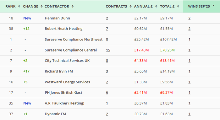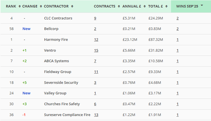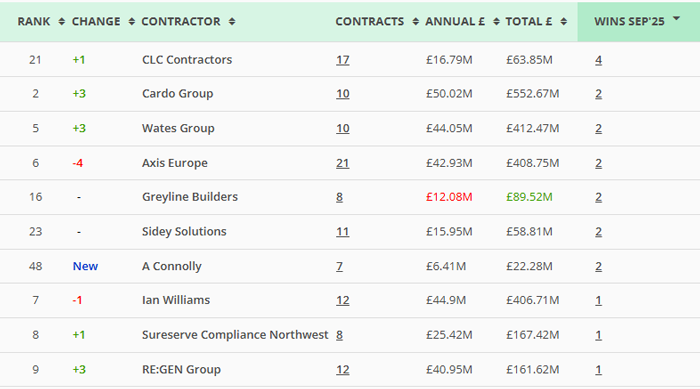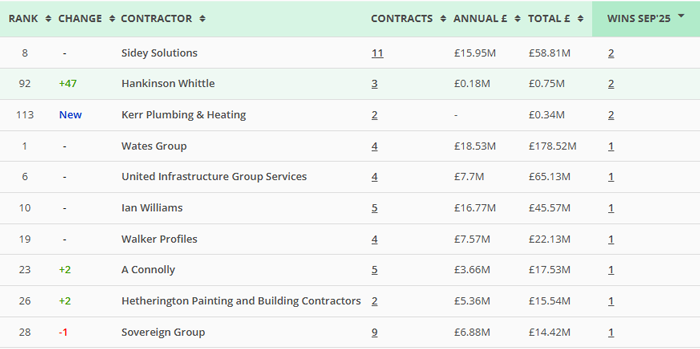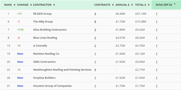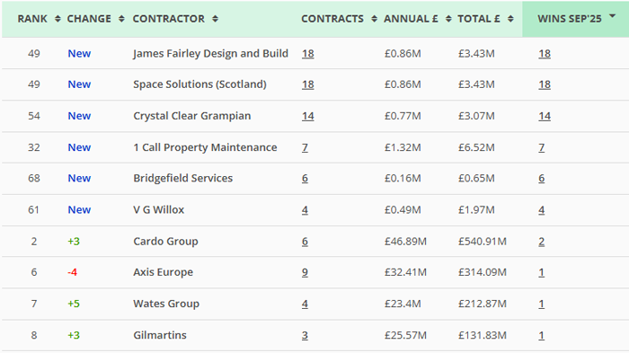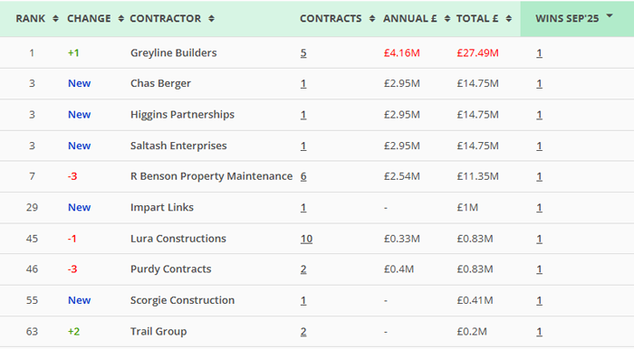 | Along with our main monthly league tables, ❲see below❳, we also produce tables based on the following trades: Retrofit, Asbestos Survey, Fire Risk Assessment, Water/Legionella & Stock Condition Survey. ❲Premium Clients, click here for the PDF❳ |
